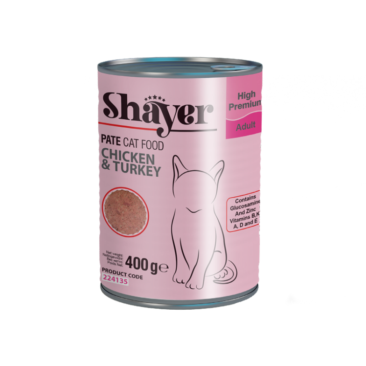 کنسرو پته گربه شایر با طعم مرغ و بوقلمون 400g Shayer Chicken &Turkey